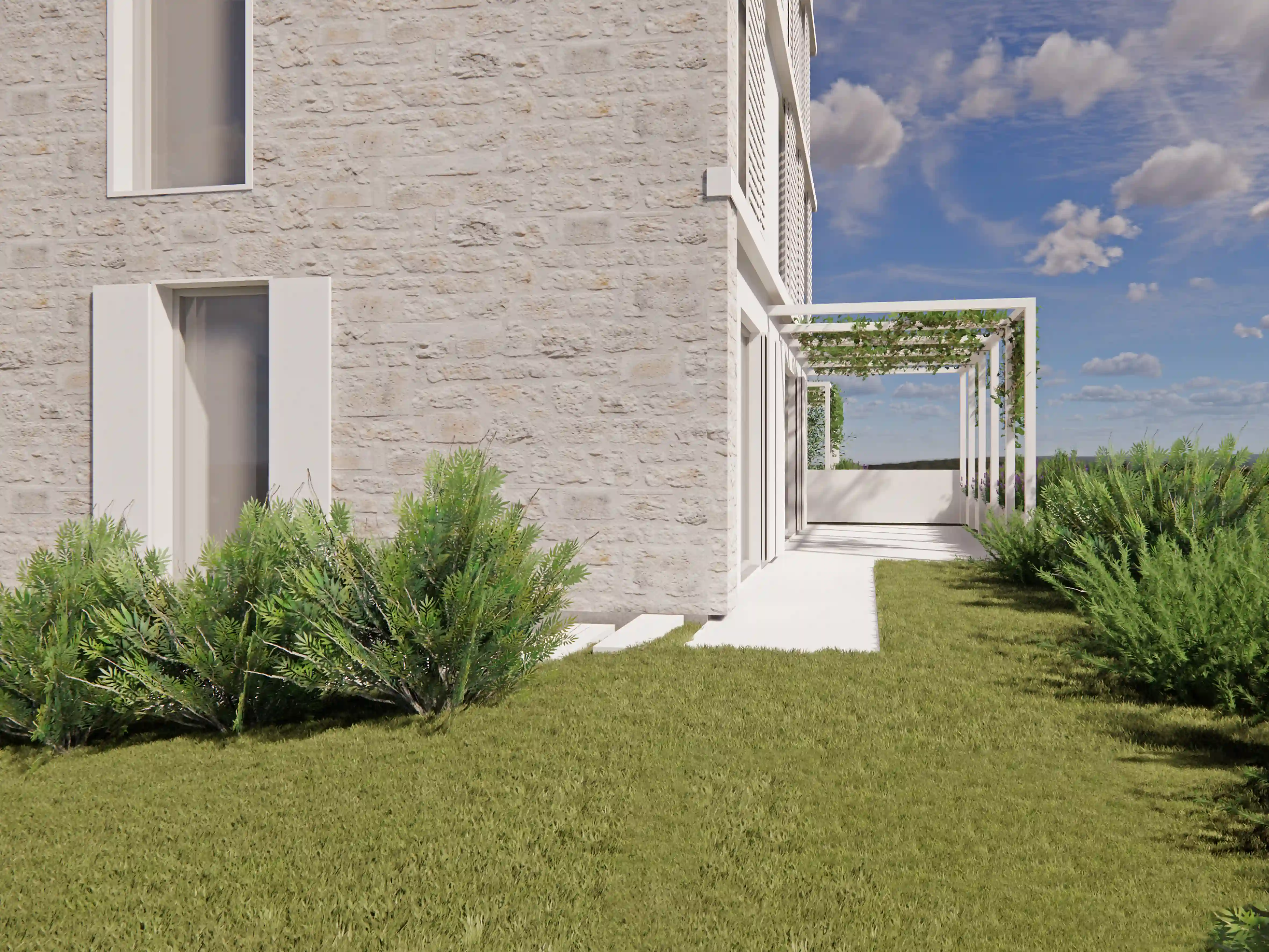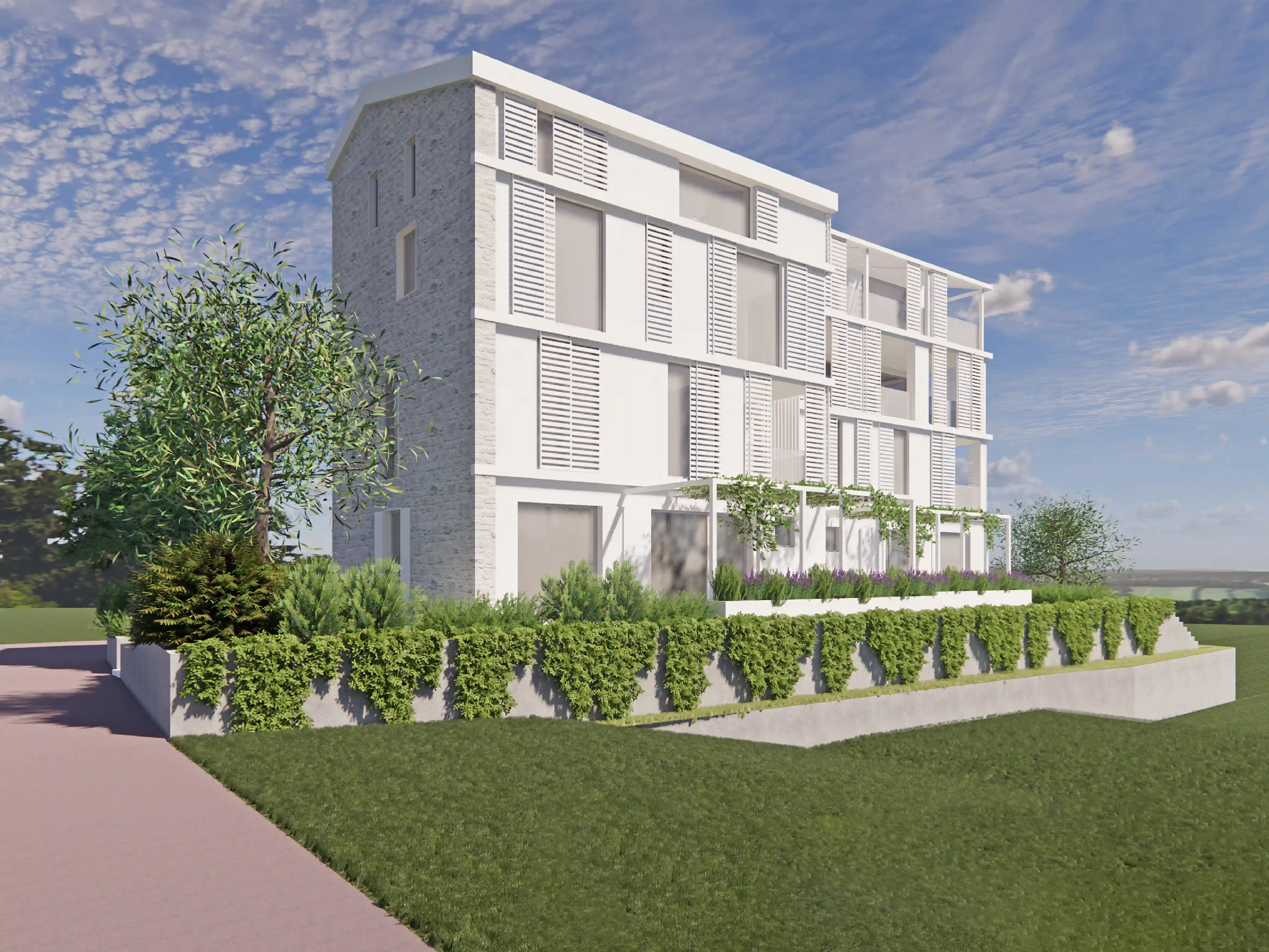 Apartmajska stavba povezuje zasebnost, odprtost in skladnost z okoljem. Uporabnikom ponuja sodoben, udoben in intimen počitniški prostor, ki zagotavlja povezanost zunanjih in notranjih prostorov in poglede po mediteranski krajini.