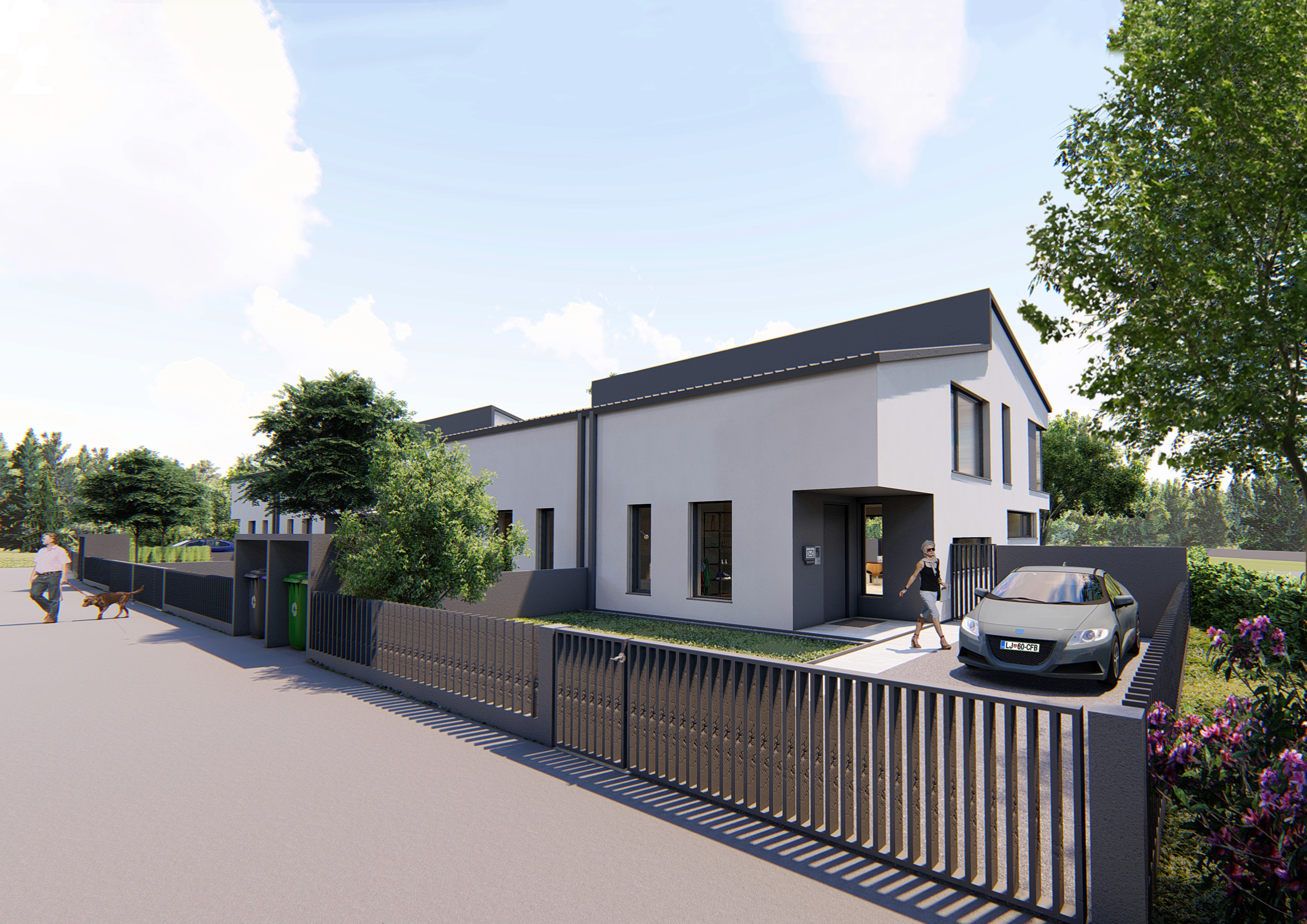 V sklopu projekta oskrbovanih stanovanj v Ponikvah smo na južnem delu zemljišča zasnovali dva dvojčka, ki združujeta udobje individualne hiše z racionalnostjo večstanovanjske gradnje. Zasnova omogoča zasebnost, stik z naravo in prilagodljivost glede na potrebe različnih uporabnikov.