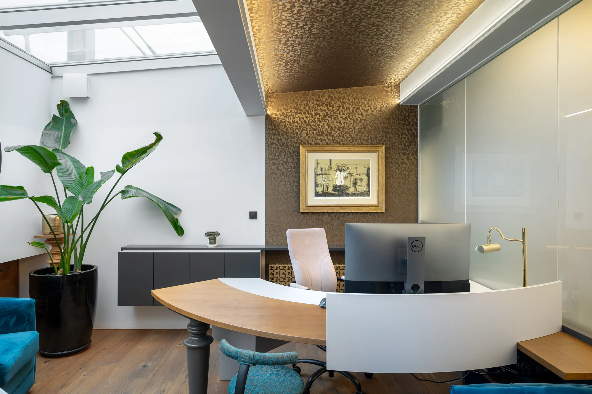 Skupni delovni prostori so oblikovani kot open-space zaledje prodajnih površin, medtem ko so vodstveni prostori individualizirani in dopolnjeni z osebno noto uporabnika. Takšna zasnova omogoča ravnotežje med odprtim timskim delom in zasebnostjo vodstva.